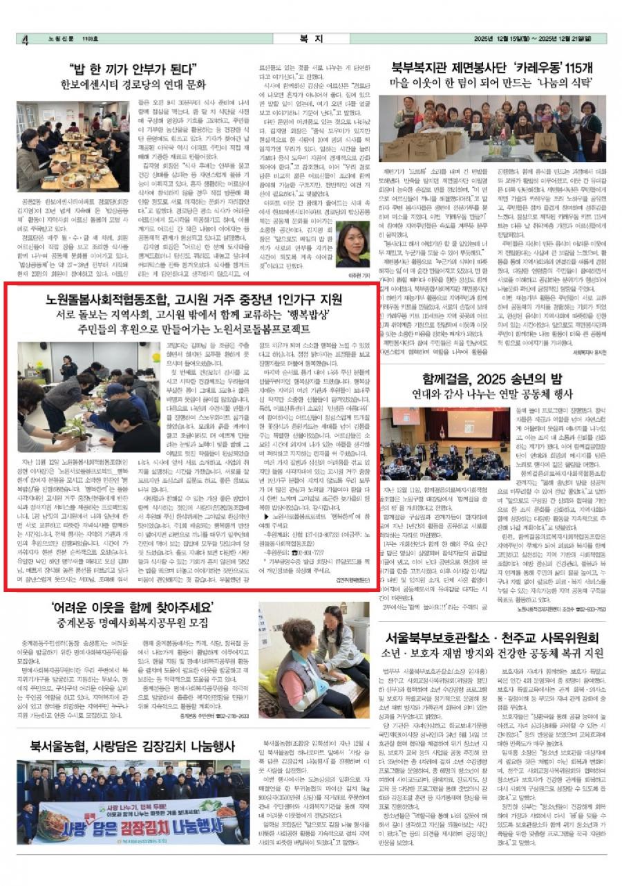 노원신문 25.12.15일자 _ 서로돌봄프로젝트 '행복한끼'